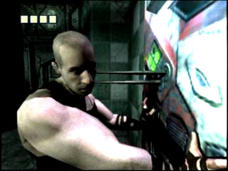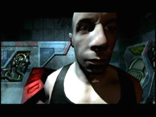 | これがゲーム内に再現されたリディックことヴィン・ディーゼル。本人を知らない人にはマヌケ面に映るかもしれないが,面長にでかい鼻と,特徴をよく捉えている |