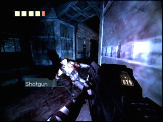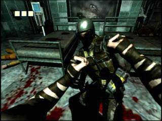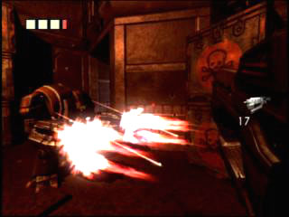 PCではすでに「DOOM III」などがリリースされちゃったこともあって,"業界最高レベル"なんていうつもりはサラサラないが,地面や壁にはキチンとバンプマッピングが施され,なんといっても光と陰のコントラストが非常に美しい。リディックが"闇好き"なこともあり,ゲームは全般的に暗め。それがかえって光やグレアを惹き立てる結果となっており,"マズルフラッシュでモンスターの姿が一瞬浮かび上がる"といったイヤ〜な演出もある。なぜか時折ひどいジャギーが発生するが,グラフィックスは押しなべて美しい。暗視義眼使用時の,エッジがぼやけて青みがかった世界は一見の価値ありだ。
