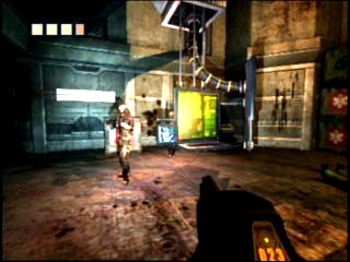 | 解像度が低いため壁の質感などは分からないかもしれないが,光源の処理についてはレベルの高さがうかがえるハズだ。ちなみに右下は,破壊不可能なガードロボット。めちゃ強い |