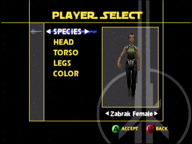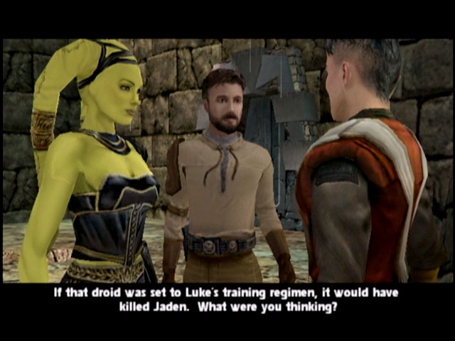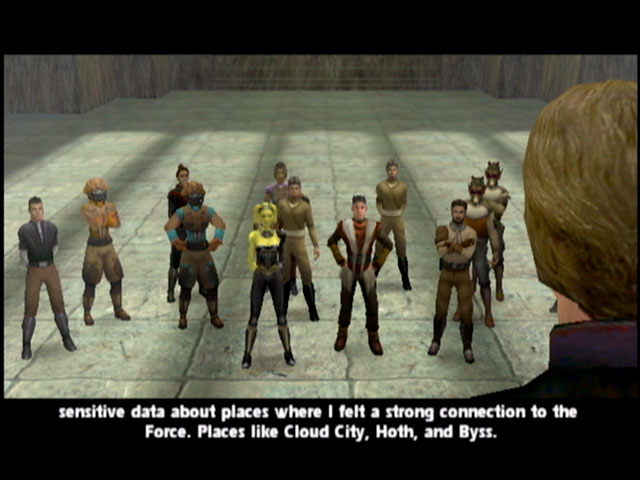 シリーズ最新作となる本作Jedi Academyは,前作Jedi Outcastの1年後を描いた作品だ。主人公は,同シリーズではお馴染みだけど,映画しか知らない人にはまったく馴染んでいないカイル・カターンから変更され,プレイヤーが好みにカスタマイズできるJediの見習い騎士となった。ただ,今作で降格されたカイルも,映画でお馴染みのルーク・スカイウォーカーと共にジェダイ・マスターとして偉そうに登場する。いないとは思うけど,彼のファンの人は安心してほしい。