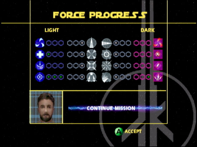 | ジャンジャンバリバリと使いまくれるフォース。左の画面をみると,今回からLIGHTサイドとDARKサイドにフォースが分割されているのが分かる。自ら選んでフォースを学んでいくのだ |