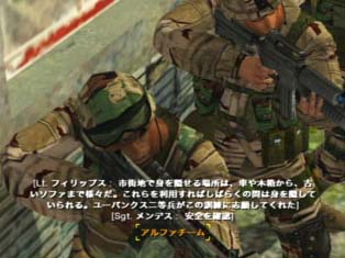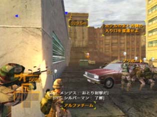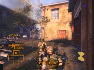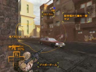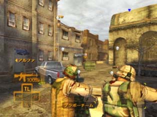 ここでプレイヤーに課せられるミッションは,主に市街地や主要道路の制圧や,別働隊の負傷兵の救護,またレンジャー部隊のサポートといったものがメイン。視界の開けた場所での戦闘はほとんどなく,偵察ヘリから送られてくるGPSデータ(全体マップおよび目的地,敵の位置が表示される)を頼りに,2部隊でうまくクリアリングフォーメーションをとりながら市街地を行軍しつつ,任務をこなしていくという具合。敵の配置とマップを頭に入れて戦う詰め将棋と考えるといいだろう。