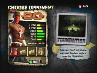格闘家として登場するのは,今この瞬間も全米ヒットチャートを沸かせている現役Hip Hopミュージシャン達。なぜ彼らミュージシャンが格闘家なのか? という説明は,見たところ一切ない。とにかく彼らは皆,ごく当たり前のように,このゲームの中ではファイターなのだ。