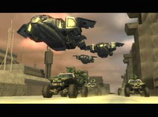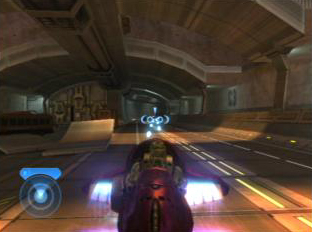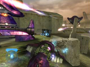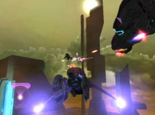 | 極々序盤で乗れるコヴナントの戦闘/輸送機"ゴースト"。左トリガを引いてる間の加速が,とっても気持ちいい。スピードは遅いが小回りの効く"バンシー"も健在。ちょっと操作しやすくなった |