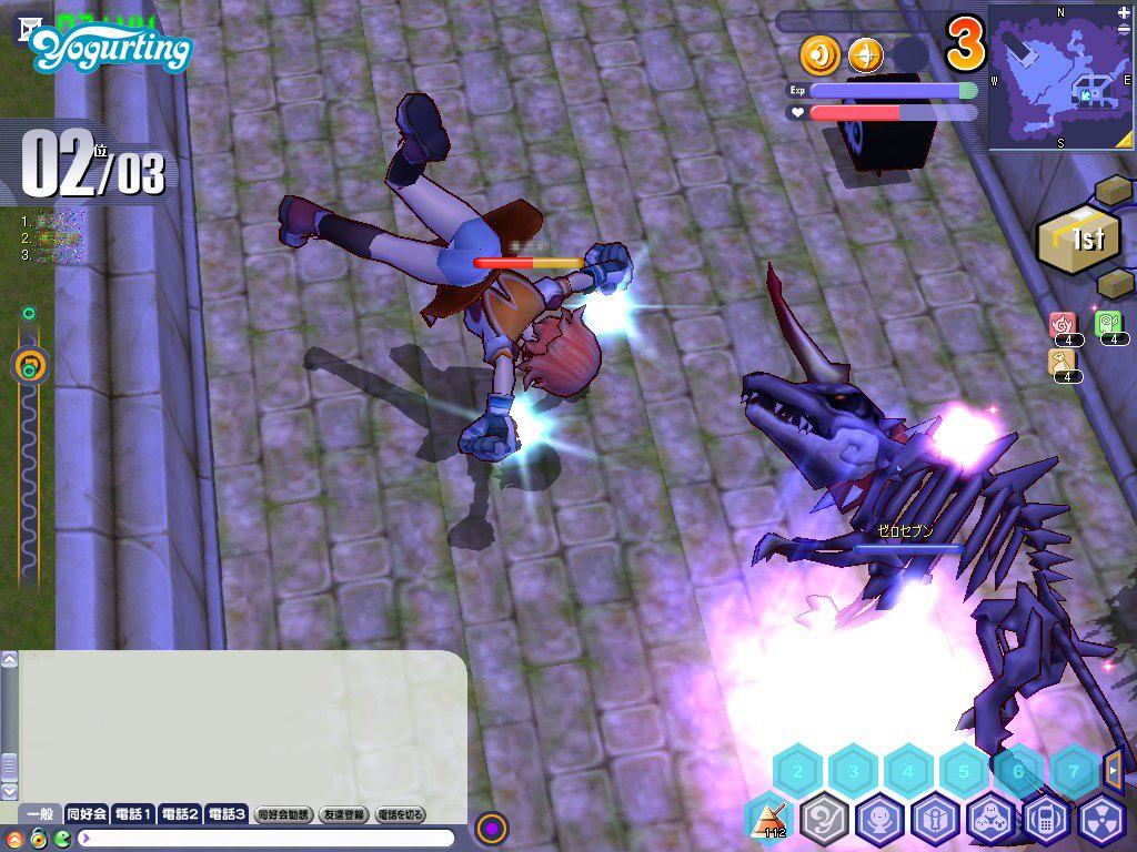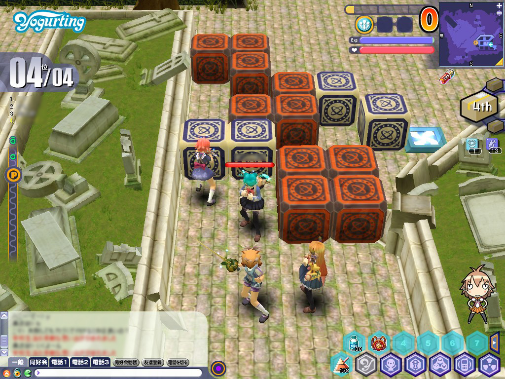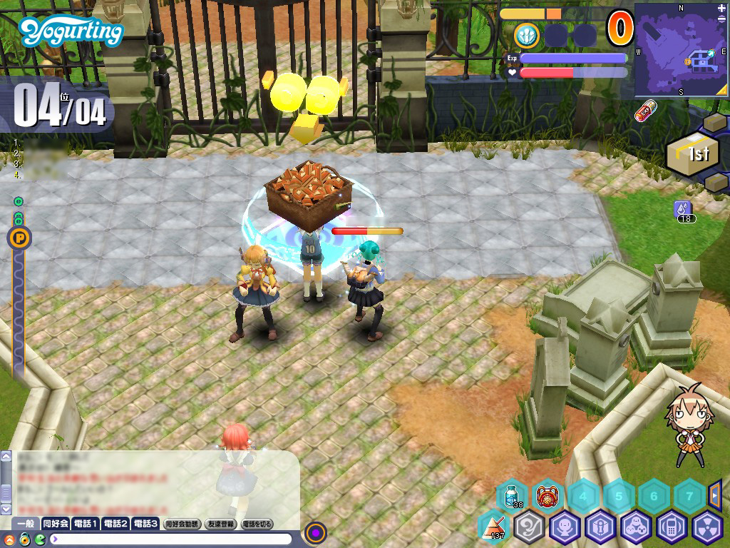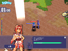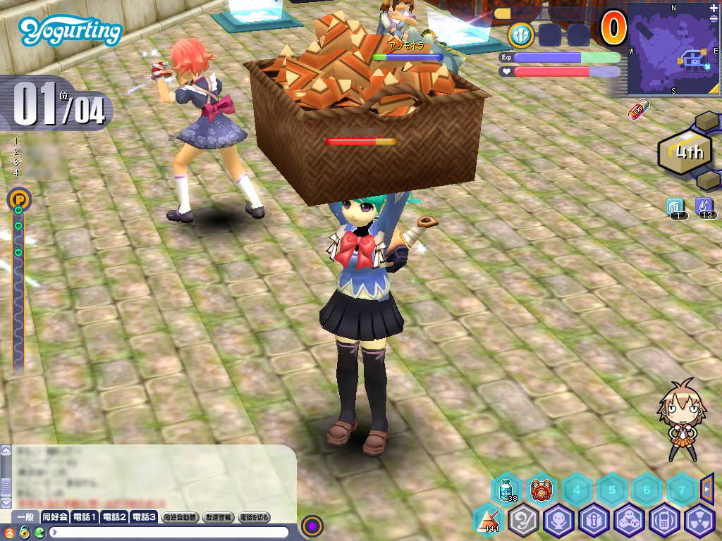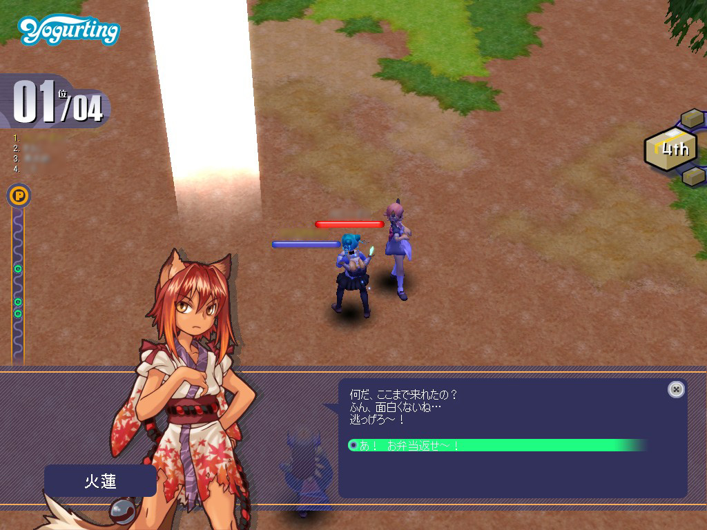 お弁当を奪った火蓮は「逃げろ〜」などと挑発のセリフを発しながら,マップをあちらこちらへと瞬間移動する。火蓮の位置は右上のミニマップに表示されるため,近いと見たら即ダッシュすべし。
