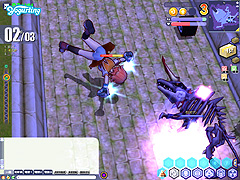 1マップめはひたすら「モネラ」を叩きまくるだけ。階段に障害物はあるが,さっさとどかしてしまおう