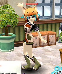 武器として使っていなくても,友達と話すとき,わざわざ付ける人が多い「ミューラ」。踊りのバリエーションも実に豊かなのだ。ちなみに画面のミューラ装備は「パンフルート」 |