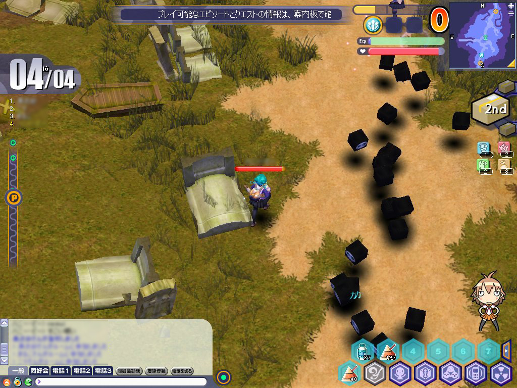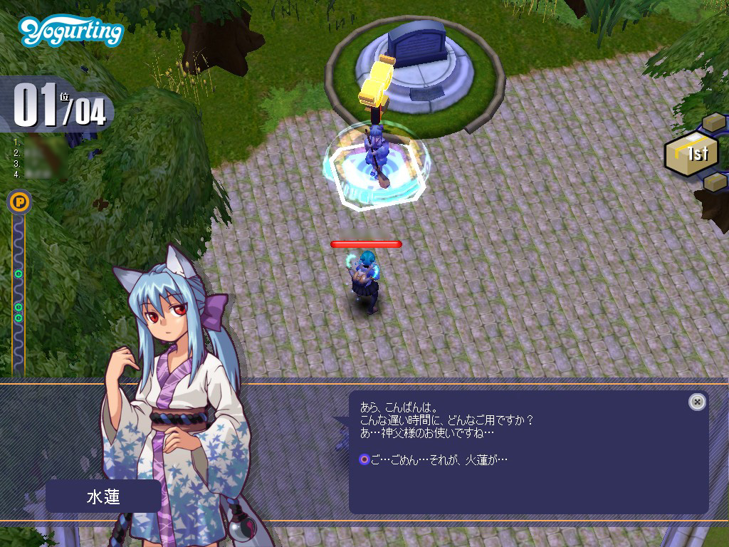 火蓮に追いつきさえすれば,必ずその位置にモンスターが出現するので,ここで数をこなしておけば2位ぐらいには楽々食い込める。3〜4人程度で協力し,火蓮を追いかけて話しかけ,ストーリーを進める役,その後を常に追って沸いたモンスターを倒す役を決めておくと効率が良い。