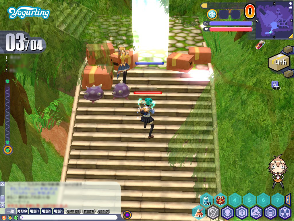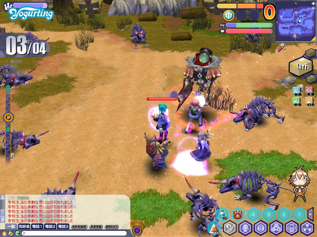 クエストをくれるのは職員室にいる生徒会役員「シンソンヒョ」嬢。実はこのエピソードは複数マップにわたっており,モンスターの出現ポイントや,自キャラの動線を覚えるには数回こなさないと難しい。さらに,ラスボスである「ファントム」の一撃は,1年生には酷なくらいのダメージだ。三角牛乳ではとても間に合わないので,回復力の大きい「ガンバミン」の使用をお勧めする。