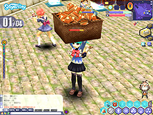 牛乳箱を頭上に掲げて運び,ゴール地点へ向かう。クエスト達成も目前である。後はいかにクリアタイムを短縮するかに全力を注ごう |