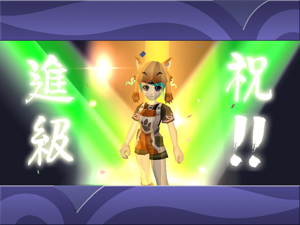 進級にここまで派手なエフェクトが必要かどうかも問題だが,わざわざ一張羅の「飼育服」に着替えた筆者も筆者であろう |