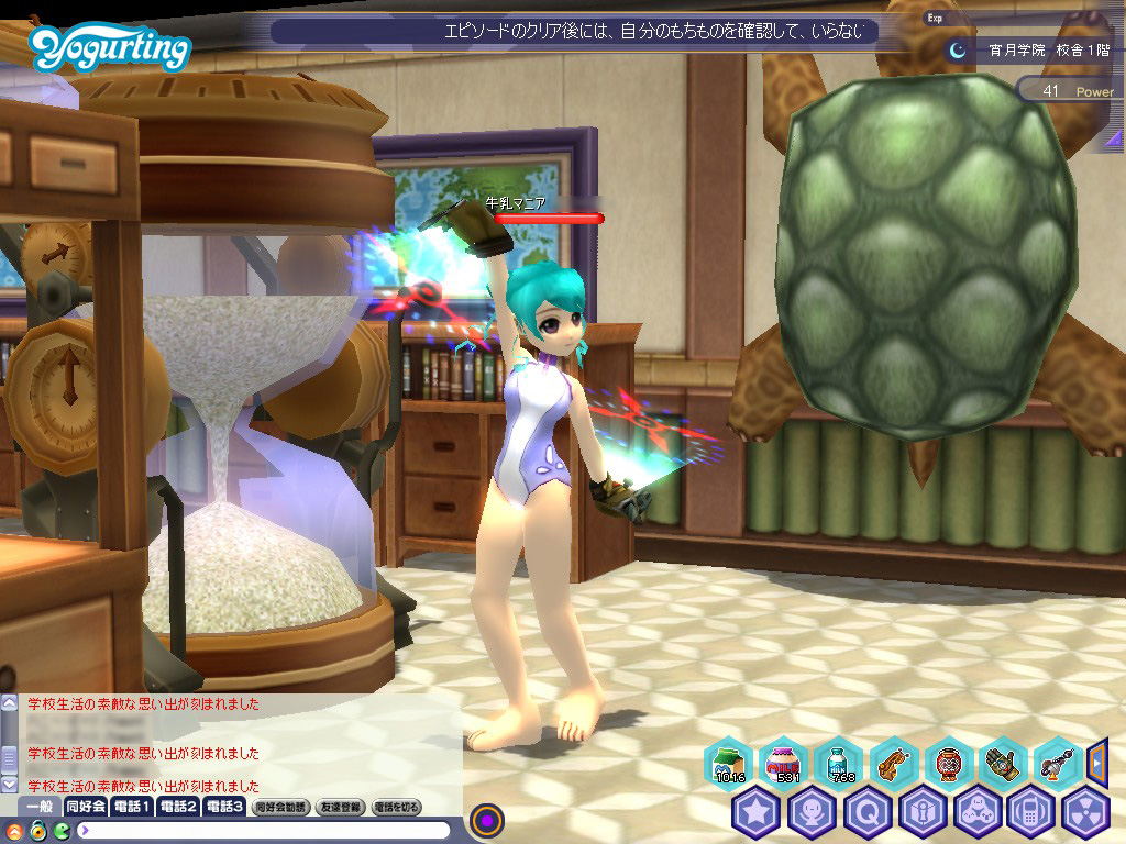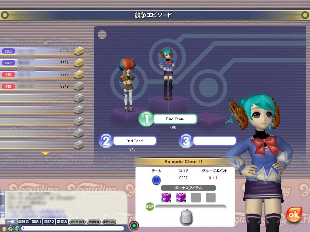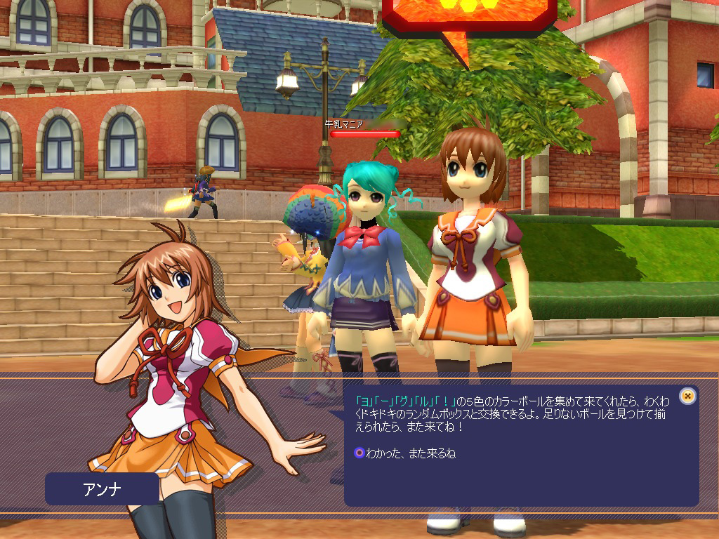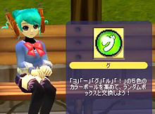 学園祭イベント第4弾を取り仕切るのが,このアンナちゃん。イベントの目標は「ヨ」「−」「グ」「ル」「!」の文字が書かれた5色のカラーボールを揃えるというものだ。エピソードをクリアすることでカラーボールをもらえるが,プレイするエピソードはどれでもかまわない。4年生が1年生のエピソードをプレイしても,もらえる可能性はあるが,そもそも入手率はかなり低い。どうせなら経験値稼ぎを兼ねたほうがよいため,プレイヤーはみな適正レベルのエピソードのうち,回転率が早いものを選んでいたようだ。