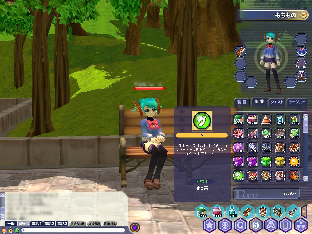 五つのうち「グ」のカラーボールがこちら。インベントリ内で選択して見ると,「グ」が大きいわけですよ……失礼しました |