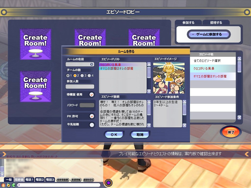 PvP要素を含むエピソードについては,前回ちょっとだけお伝えしたが,実は各学年に最低一つは用意されている。1年生には「エクストリーム・ボールバトル」,2年生には「墓石競争」,3年生になれば「オマエの部屋はオレの部屋」と「赤いソソ,青いソソ」の二つをプレイできる。どれも単なるPvP戦闘や競争ではなく,舞台設定や登場キャラクターに工夫を凝らした楽しいものなので,まとめて取り上げてみたい。