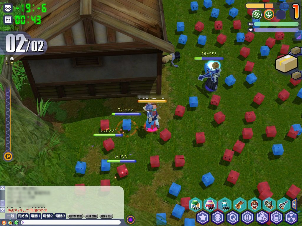 開始20秒足らずで,このHP瀕死状態。そして見渡す限りのレッド&ブルーソソ。ツブツブが苦手な人は鳥肌が立つかも |