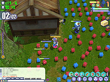 ここでは青が自軍陣地で,敵が赤の陣地。青のほうがちょっと豪華な作りで,それだけで勝った気分になれるかも |