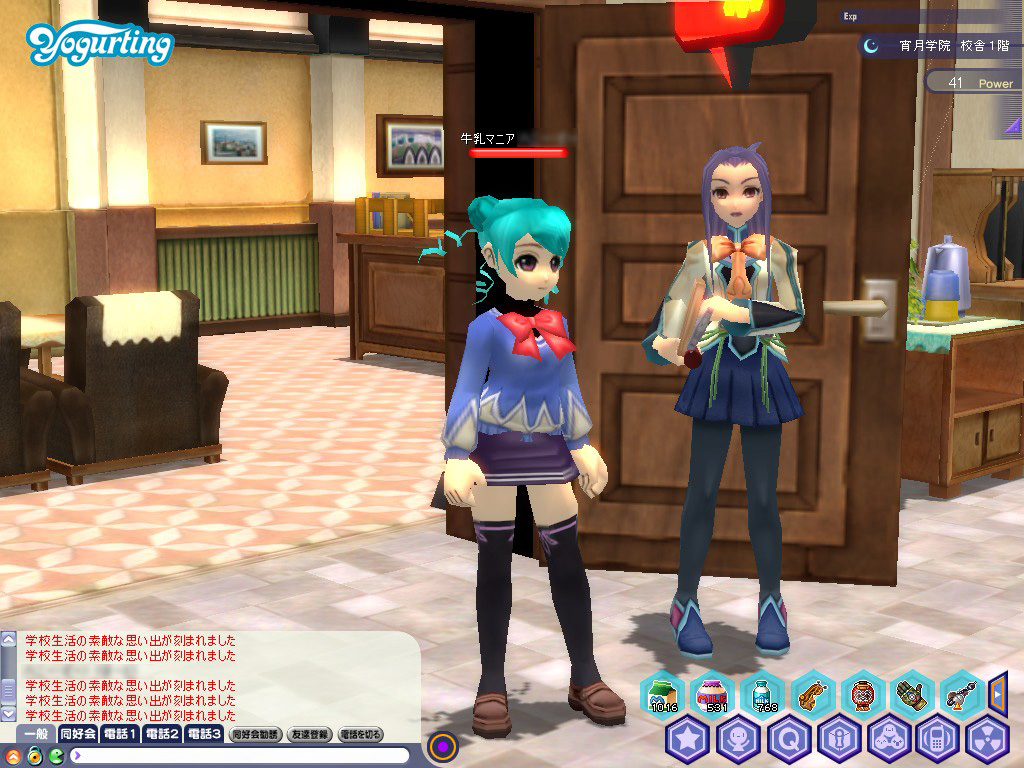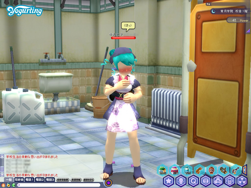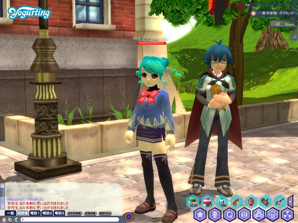 いつもの校庭に見慣れぬNPCが……と思ったら,なんとヨーグルティングのイメージキャラクターにして,最強の絶対領域保持者「アンナ」ちゃんじゃないですか。3年生進級まで祝っていただいて,ありがとうございます。
