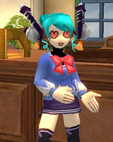 とりあえず季節感を演出するために,暖かそうなニット服で学園祭イベントの話題から。足元のミニスカートは,ぜんぜん暖かそうじゃないわけですが,これはこれで女子高生らしいかと。