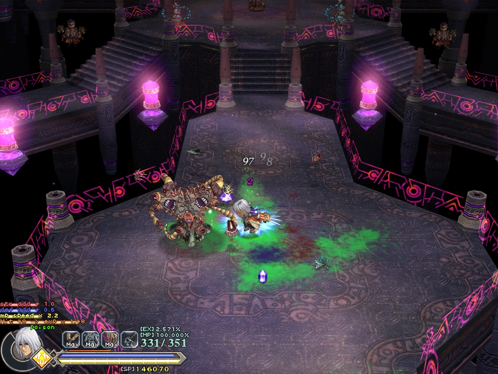 | 雷のスキルは,「スキル溜め」で使うと攻撃範囲の狭さを克服できる。メインの攻撃手段にもできるほど強力である |