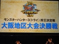 「モンスターハンターフェスタ’09」“大阪大会”が,大阪府・インデックス大阪5号館で8月30日に開催された。まずは,「モンスターハンター3(トライ)」日本一の最速ハンターを決める「狩王決定戦」の模様をお届けする。2008年の“最速ハンター日本一決定戦”覇者の「もうゲネポ」も出場した大阪地区大会では,優勝チームが3分を切るタイムを叩き出している。