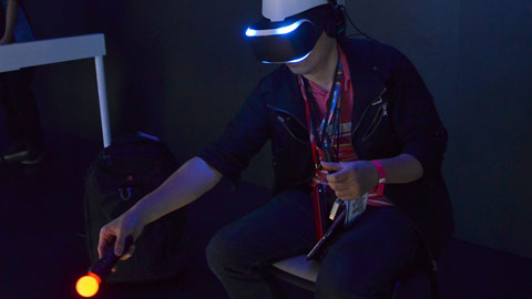 [2014/06/13 19:20][E3 2014]ソニーのVR対応型HMD「Morpheus」,その新作デモ2作品をレポート。路面スレスレを滑走し,恐竜と間近に触れ合える迫力の超体験だ